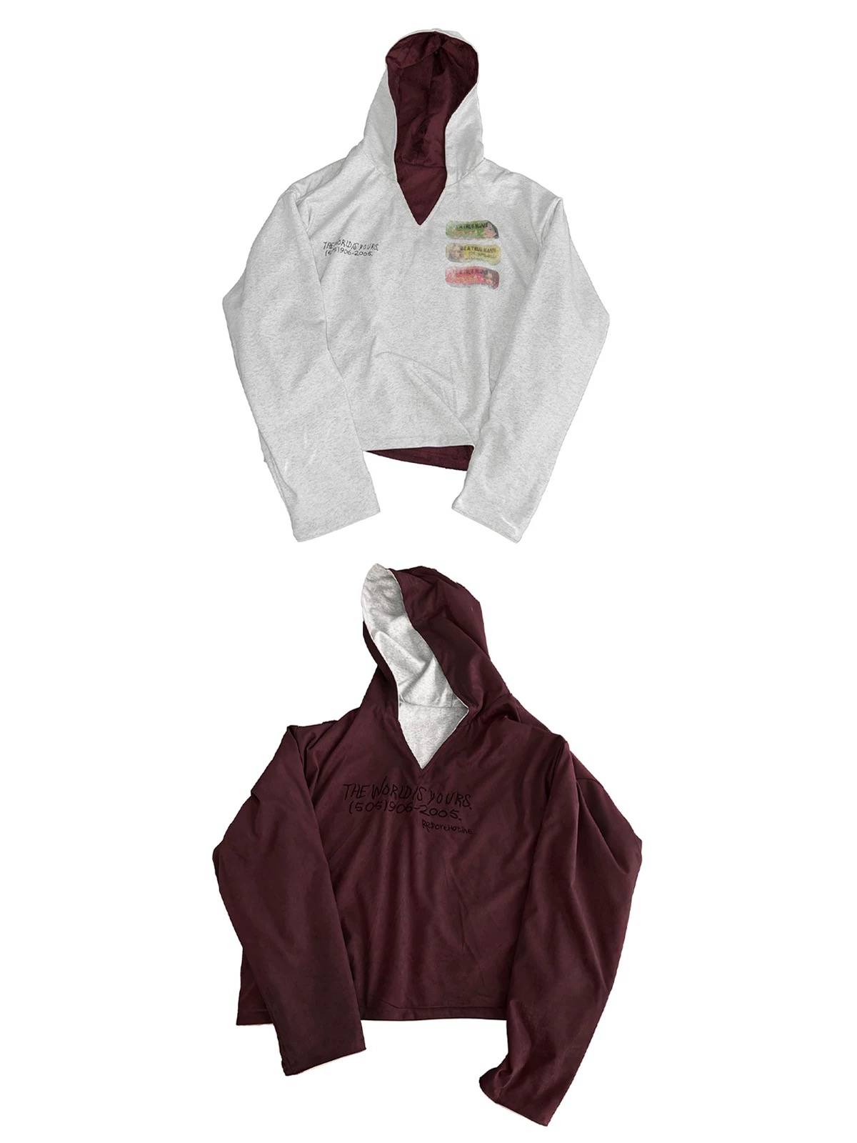 no E mosen* “间谍卡片”举报热线刺绣深红丝绒双面穿连帽卫衣 368.00 已售:0件