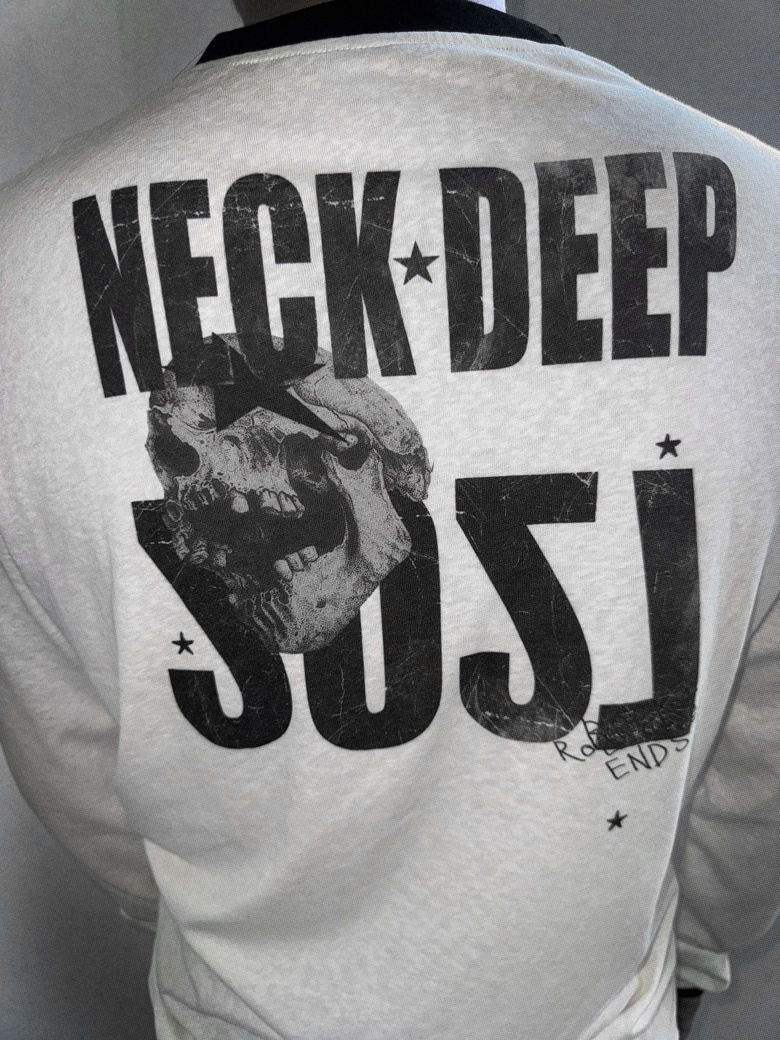 no E mosen* NECKDEEP骷髅印花微透雪花棉捏褶合身拼接街头长袖 368.00 已售:0件