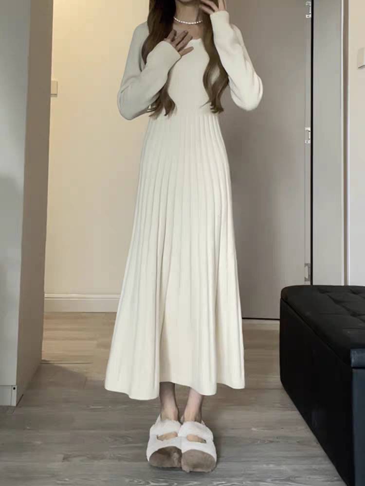 大码针织打底连衣裙女秋冬胖mm温柔风收腰显瘦遮肉内搭毛衣长裙子