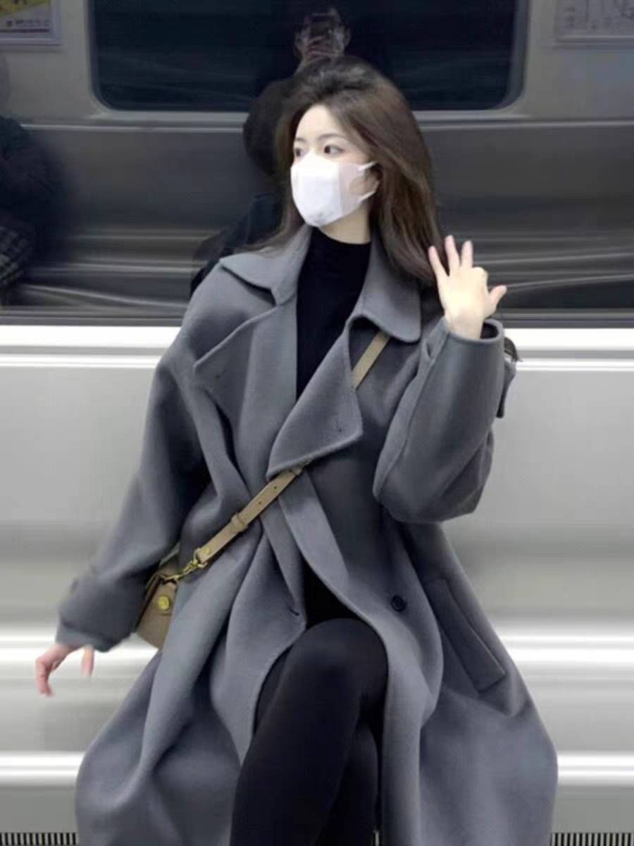 双面羊绒大衣女羊毛2023秋冬新款韩系小个子中长款高级感毛呢外套