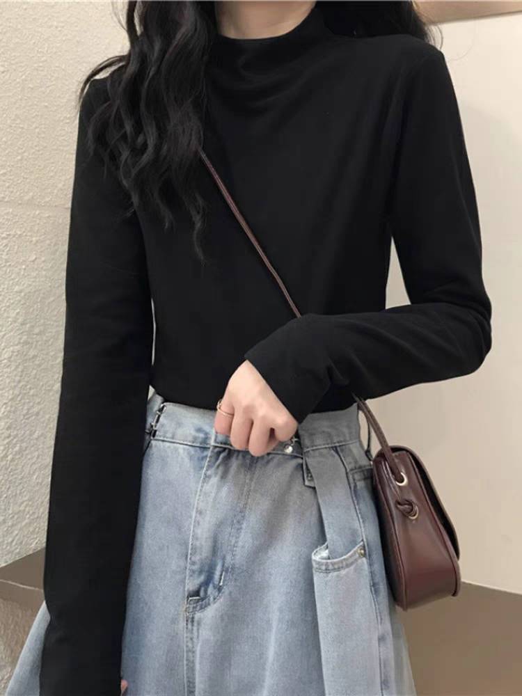 秋季2023新款半高领白色打底衫内搭女装宽松长袖t恤上衣外穿小衫