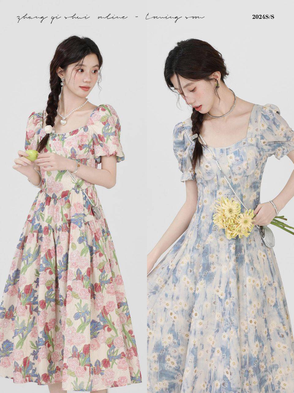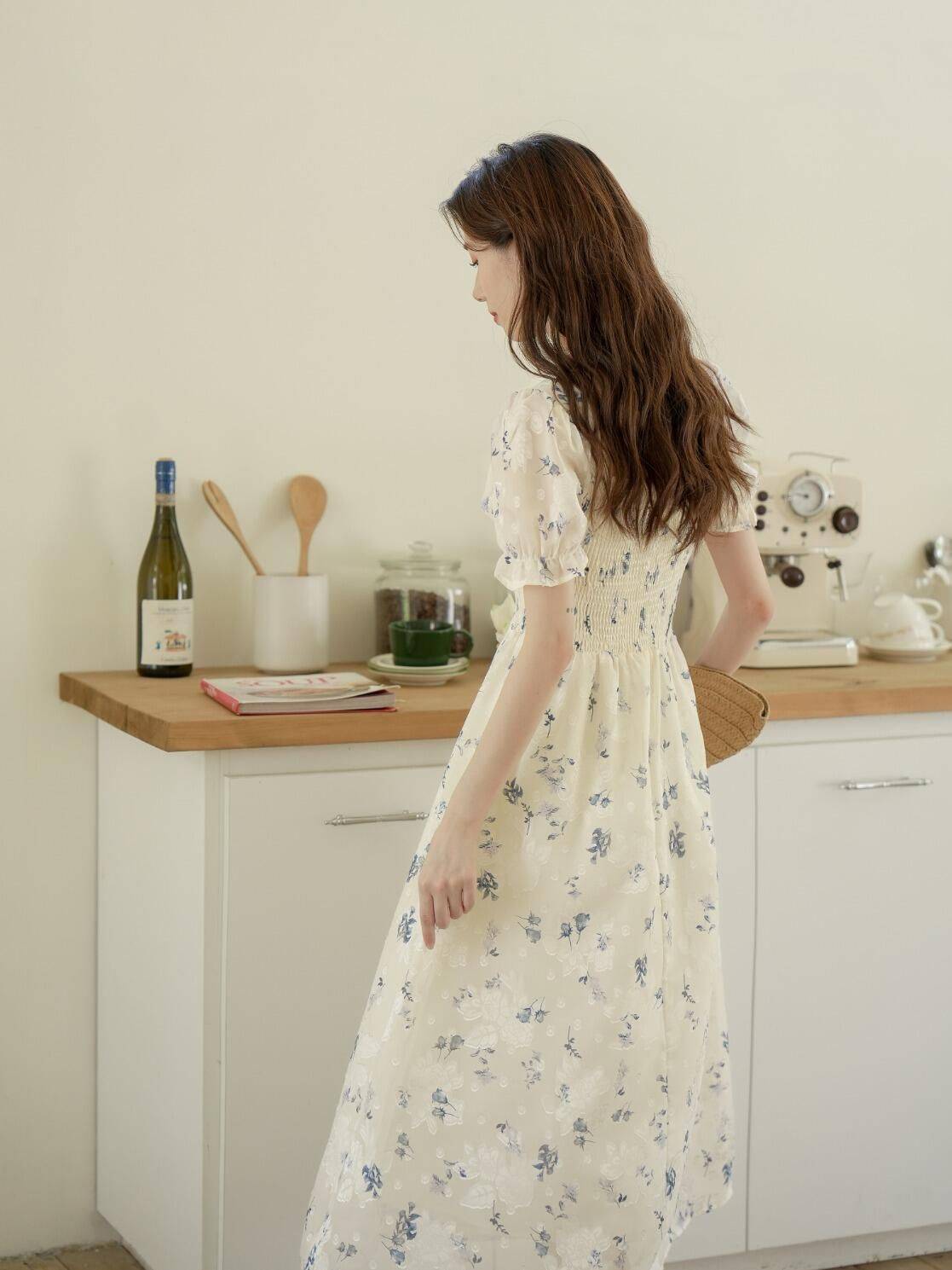 清冷碎花连衣裙
