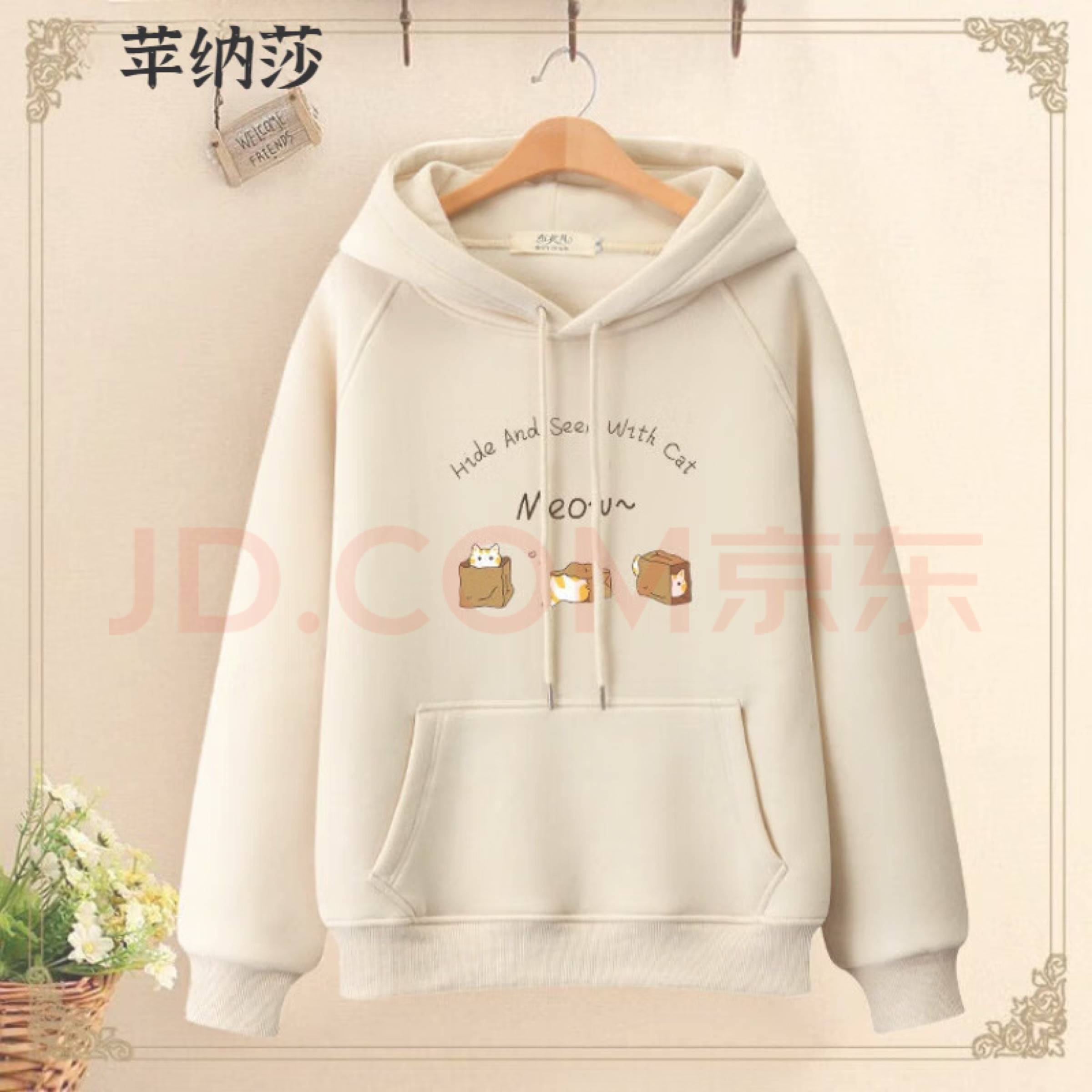苹纳莎加绒卫衣女宽松2023春秋冬新款女装学生韩版百搭连帽oversize上衣 杏【不加绒春秋薄款】三只小猫 L 建议1