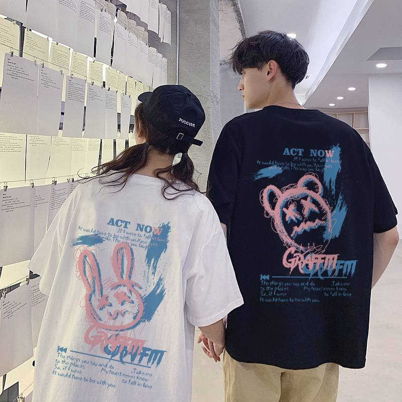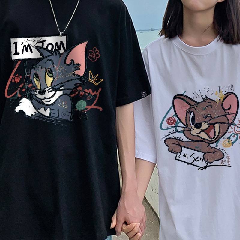 涂鸦猫和老鼠情侣装夏季短袖男t恤设计感小众潮流宽松纯棉体恤衫