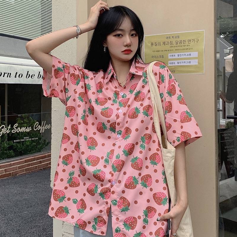 女生衬衫夏季新款韩版ins原宿风水果印花学生宽松百搭半袖上衣潮
