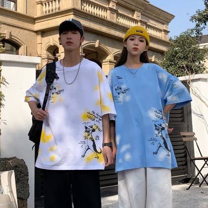 包邮 2021夏季款休闲短袖男生女生潮流情侣装半袖 76.00 已售:0件