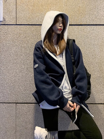 秋冬加绒加厚卫衣女连帽衫韩版学生宽松大码长袖上衣外套