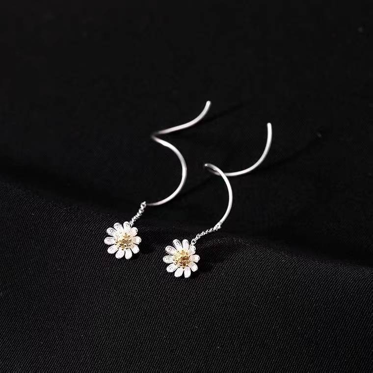 925纯银耳钉 韩版时尚清新雏菊耳线 女款 气质耳饰 长款耳环