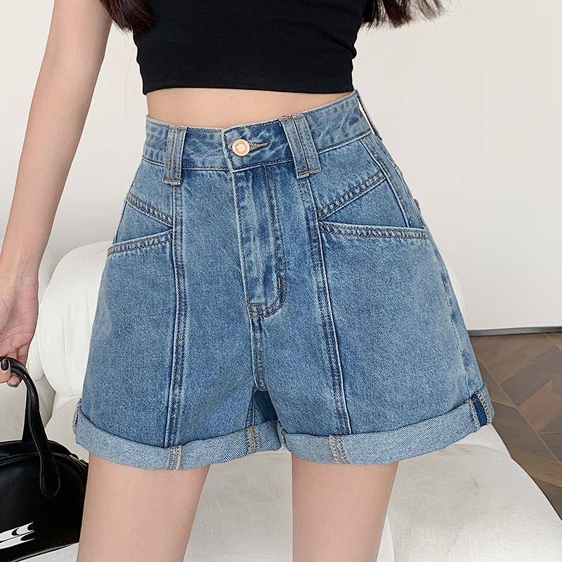 韩版气质高腰牛仔短裤女2023夏新款时尚胖妹妹显瘦大码卷边阔腿裤