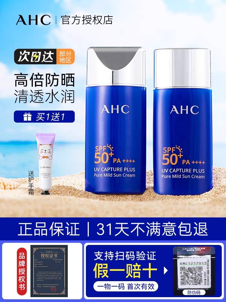 AHC防晒霜小蓝瓶学生党面部隔离防紫外线二合一男女士官方旗舰店