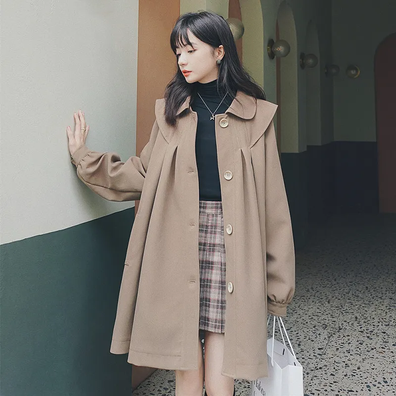 精品铆钉卡其色风衣宽松中长款大翻领 99.99 已售:0件