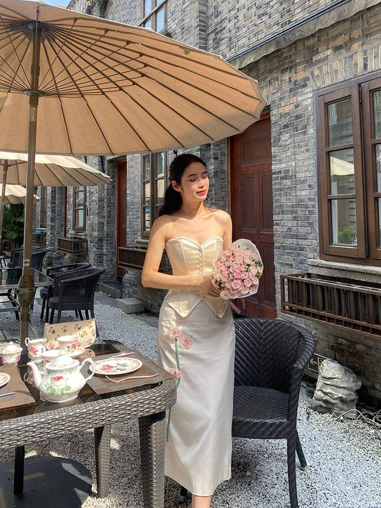 【虞美人】秋季白色醋酸缎面复古高腰半身裙包裙半裙