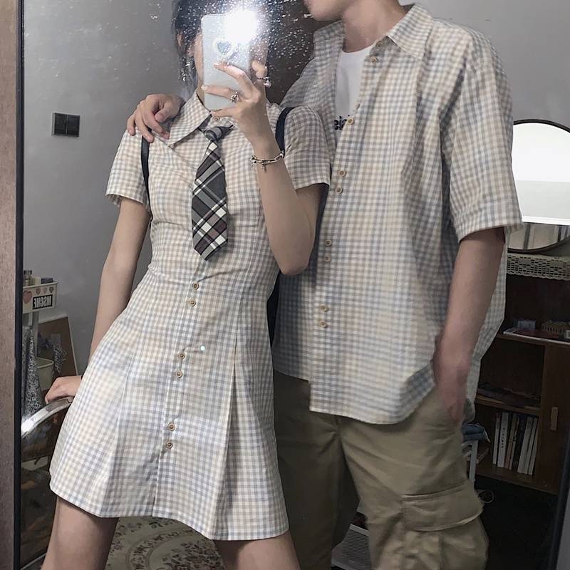 情侣装夏装小众设计感ins超火港风短袖衬衫连衣裙法式一衣一裙潮