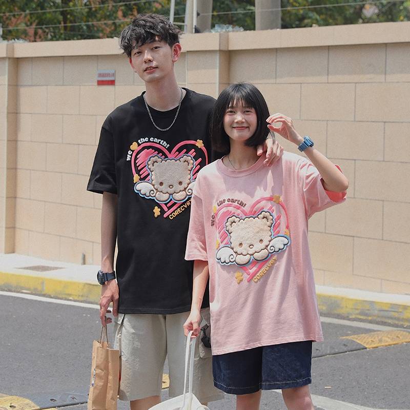 衫岛夏季可爱情侣装短袖T恤男ins潮流设计感学生宽松半袖体恤衫