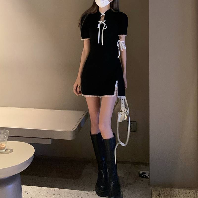 法式复古旗袍改良连衣裙女夏季2021年新款性感辣妹包臀开叉短裙子