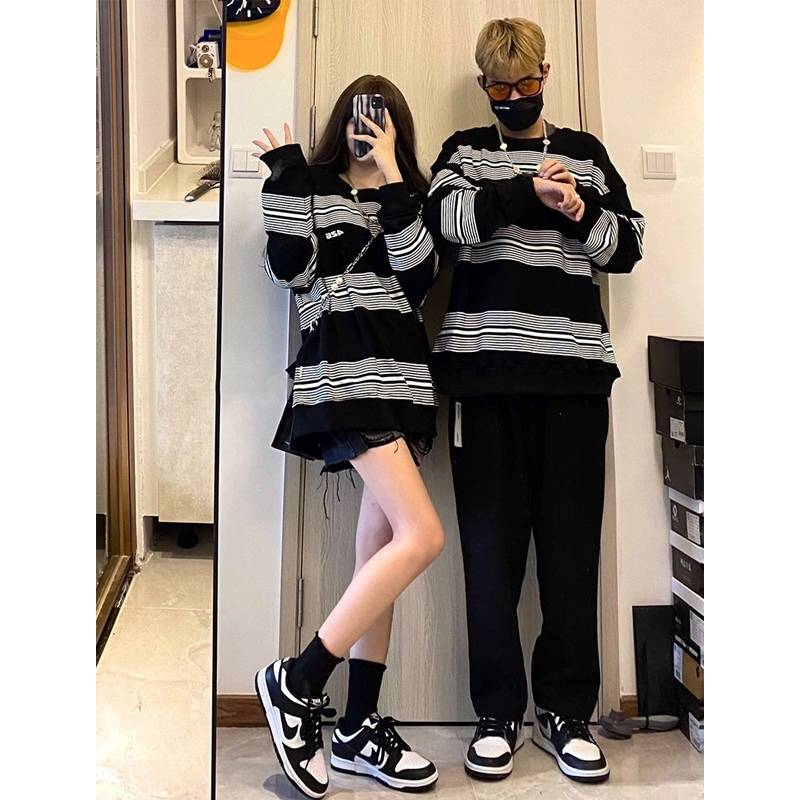 情侣装秋装高级感ins超火卫衣潮牌网红2021春秋款圆领条纹上衣女