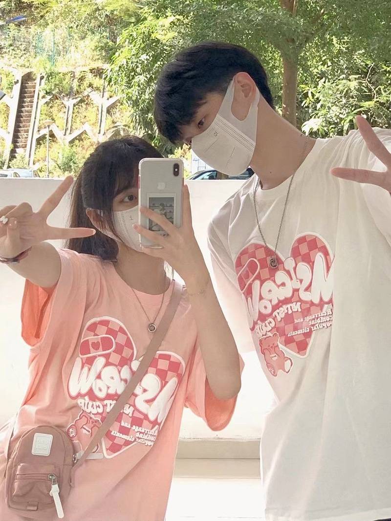 小众设计感不一样的爱心情侣夏装白粉色上衣短袖T恤2021新款百搭