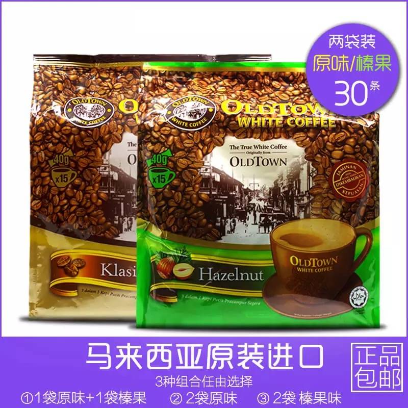 马来西亚进口旧街场咖啡榛果味三合一速溶白咖啡粉 2包30条