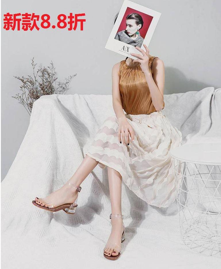 Shoes女式时装凉鞋网红同款2020夏季新款铆钉透明高跟凉鞋女粗跟