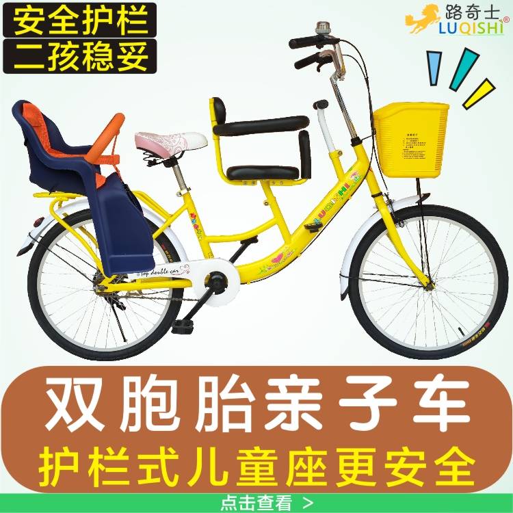 路奇士带护栏宝宝母子自行车 接送小孩折叠亲子带娃代步单