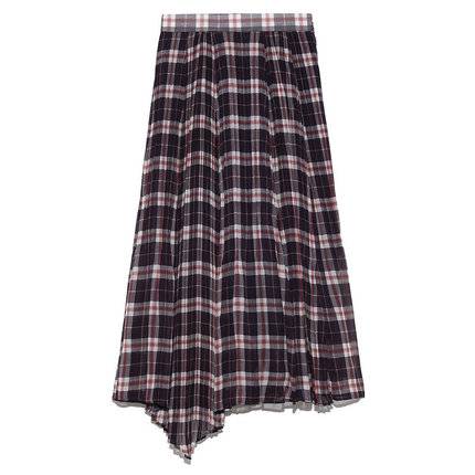2019春夏新品 英伦格纹不规则百褶雪纺半身裙