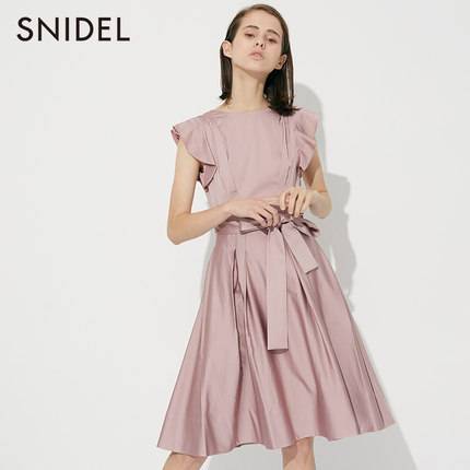 尼尔尼尔2019春夏新品气质缎面荷叶袖系带露背礼服连衣裙