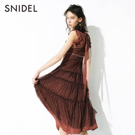 尼尔尼尔2019春夏新品甜美波点荷叶边系带雪纺蛋糕连衣裙