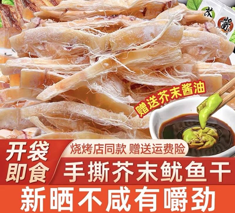 手撕芥末鱿鱼干开袋即食下酒菜零食海鲜熟食烧烤尤鱼干货