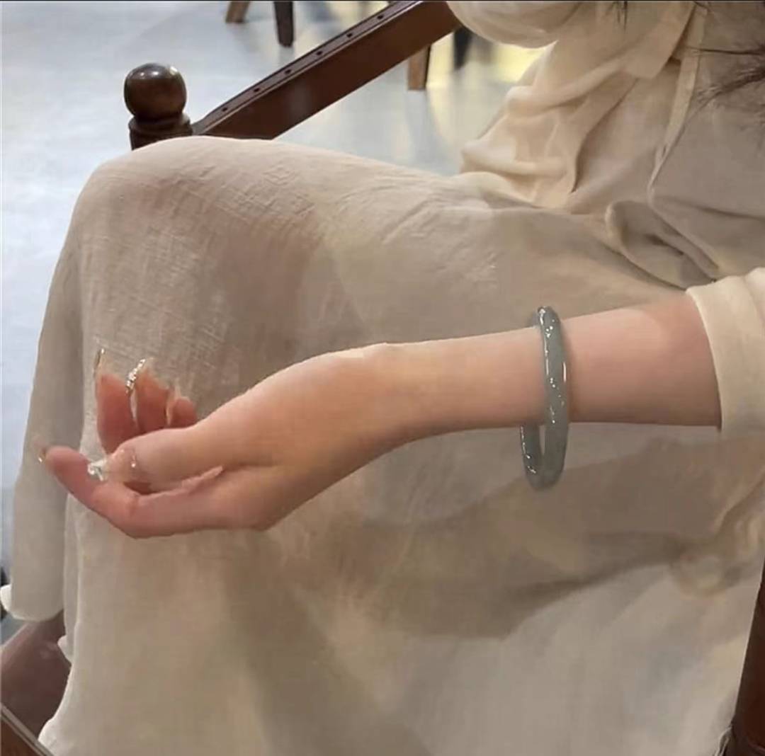 烟灰色古风手镯女轻奢首饰设计感ins礼物小众饰品玻璃碧玉圈口