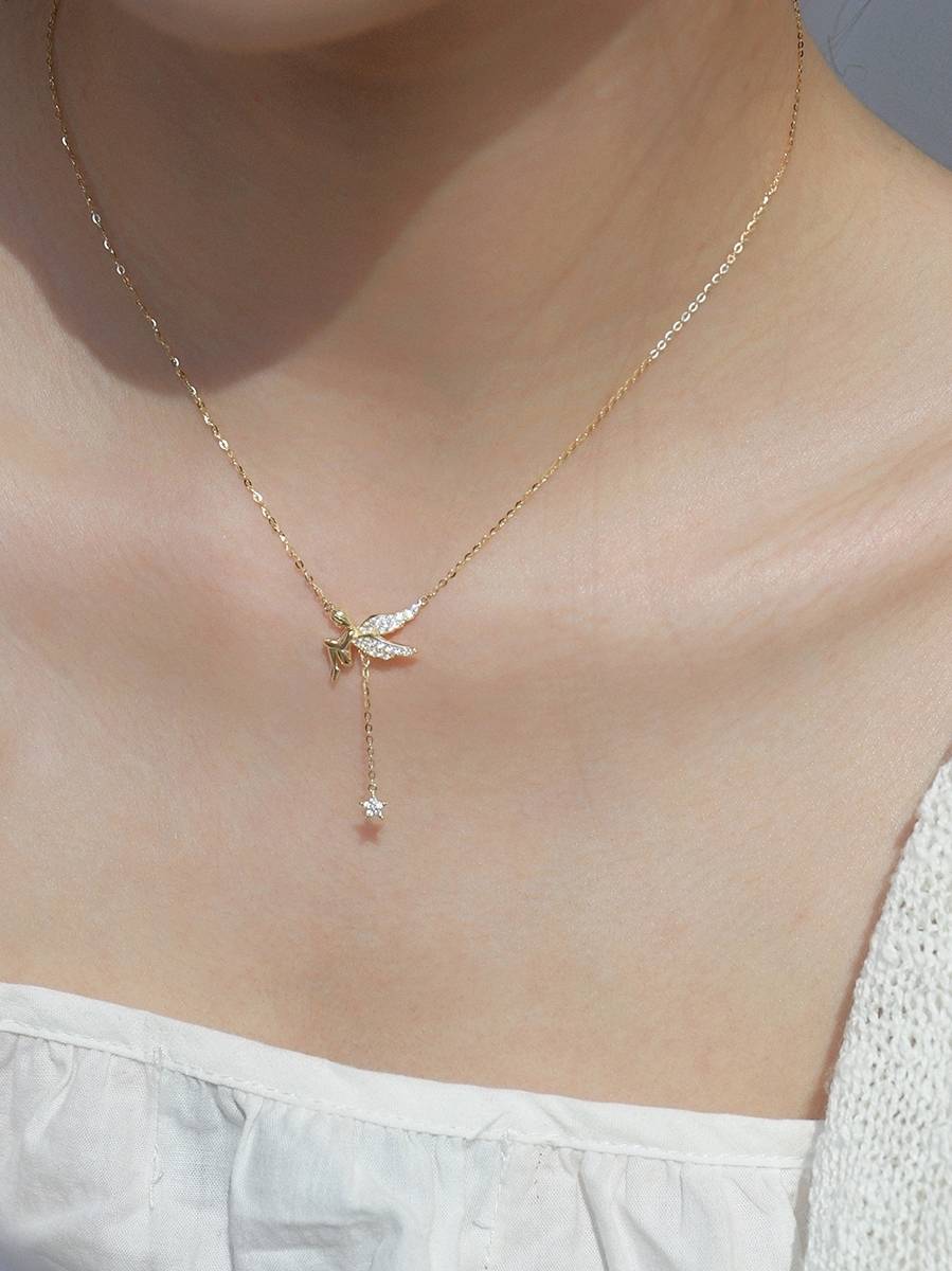 精灵纯银项链女小众设计感天使轻奢夏原创锁骨链七夕礼物