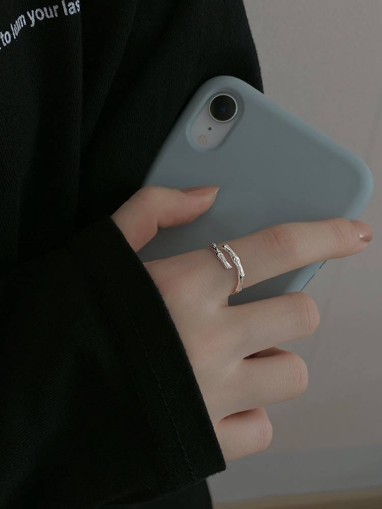竹节戒指女小众设计食指戒指女时尚个性银戒指2021年新款潮