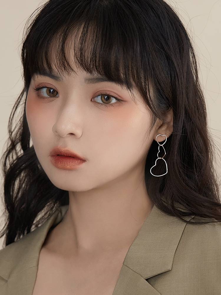 925爱心吊坠纯银耳钉女耳环耳饰个性ins小众网红耳坠冷淡风