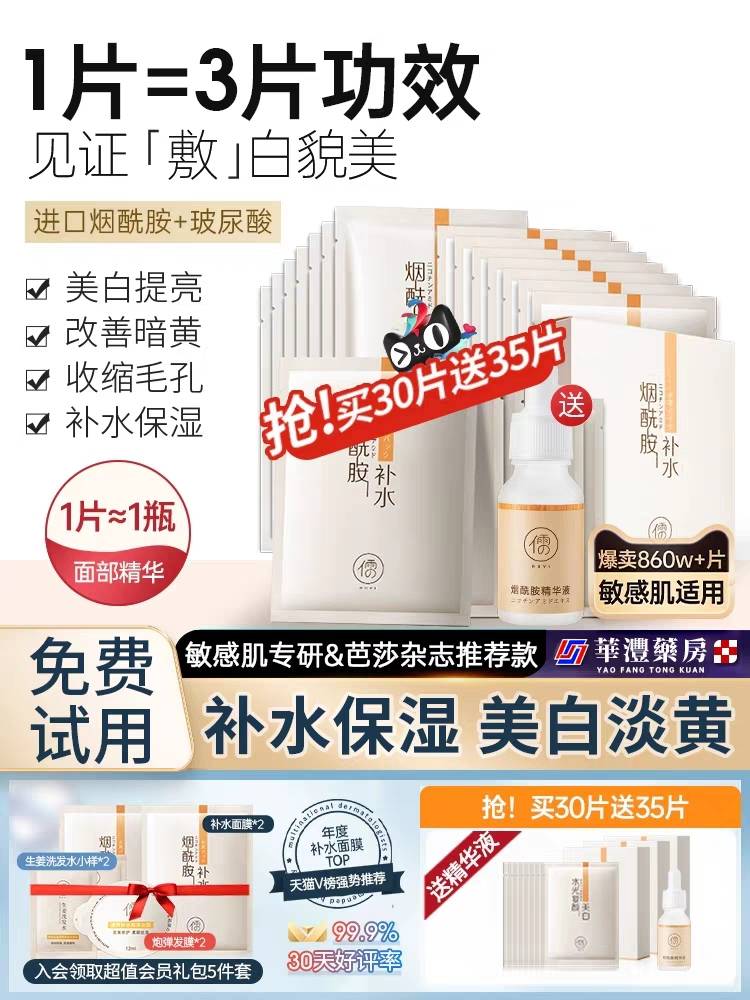 烟酰胺补水保湿美白面膜女去黄气改善暗沉男士专用官方正品旗舰店