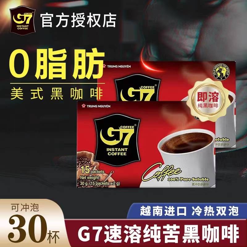 越南G7咖啡15杯*2盒无添加蔗糖美式纯黑咖啡粉速溶健身原装进口