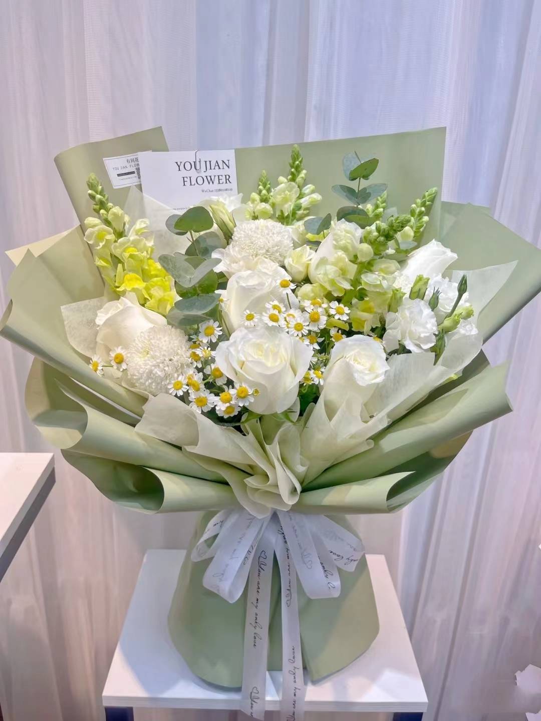 茉莉花小花束白玫瑰混搭鲜花同城速递配送花店