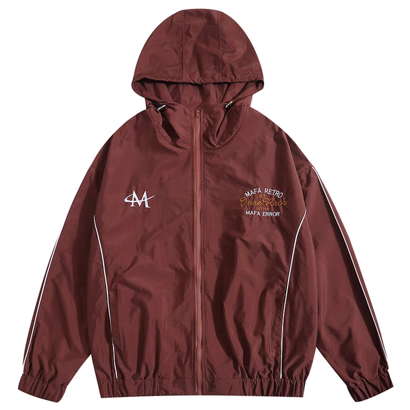国潮高街个性刺绣连帽冲锋衣夹克复古男女宽松hiphop薄款秋
