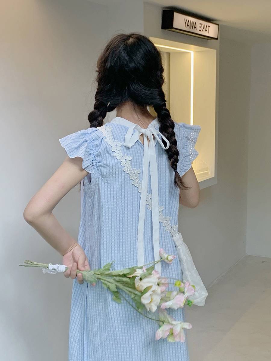 goddess法式甜美飞飞袖收腰显白中长裙夏季新款女装