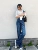 ins复古高街深蓝色高腰阔腿裤直简拖地长裤