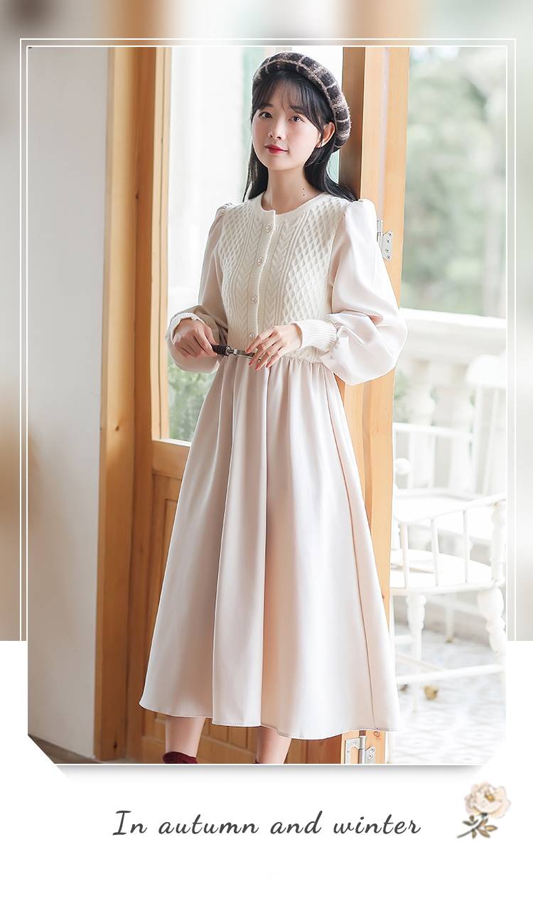 配大衣收腰针织连衣裙女装早秋季2022新款秋冬打底裙子奶甜小个子