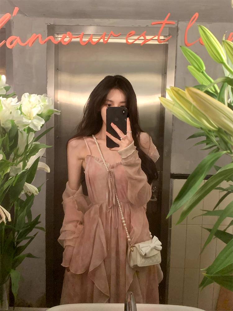 一颗甜桃yikett《破碎感女主》夏季新款V领吊带连衣裙仙女裙甜美