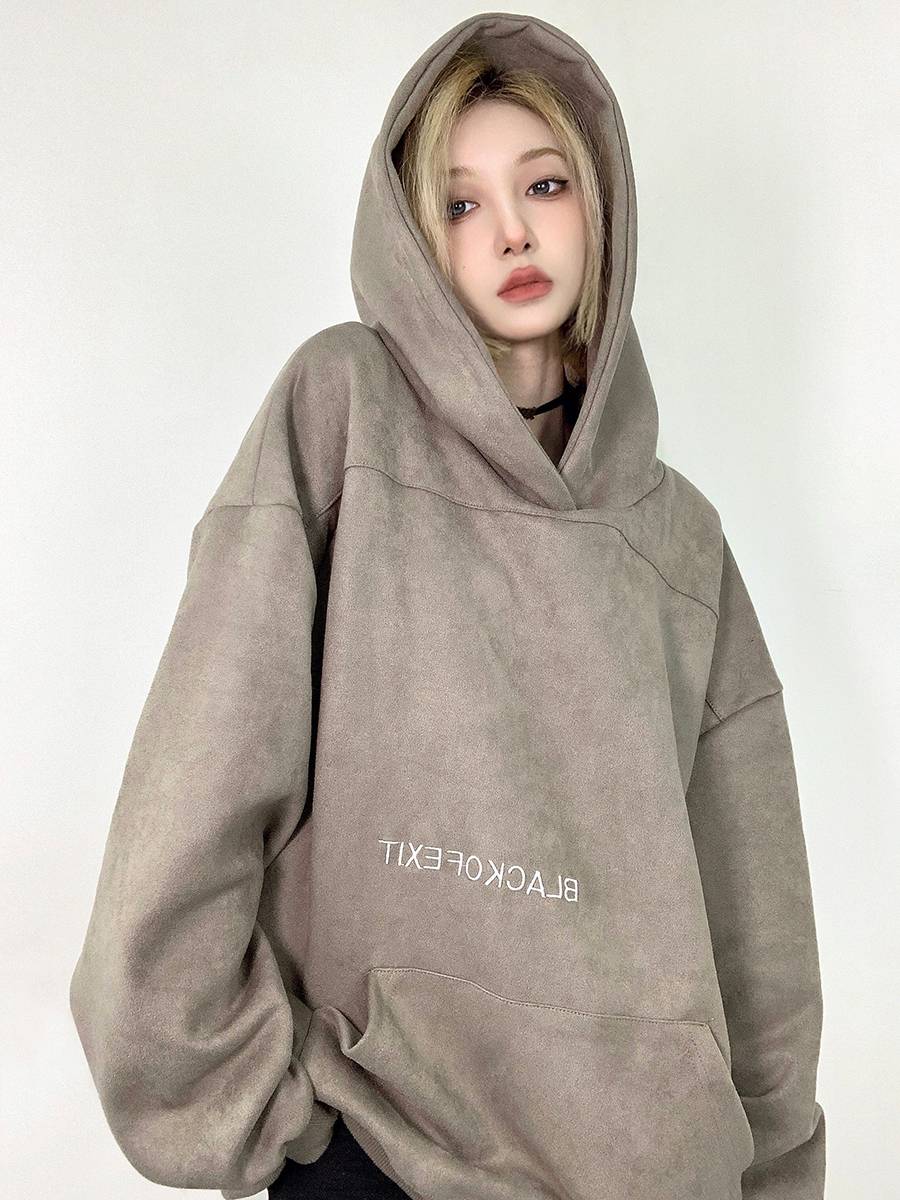 NOSLEEP 原创高街国潮小众刺绣麂皮宽松连帽卫衣男女oversize上衣