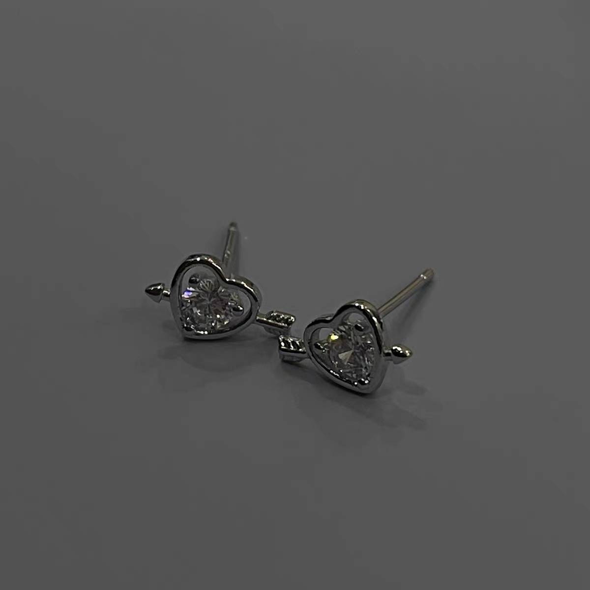 不对称爱心耳钉 925纯银 ins风小巧耳钉 甜酷