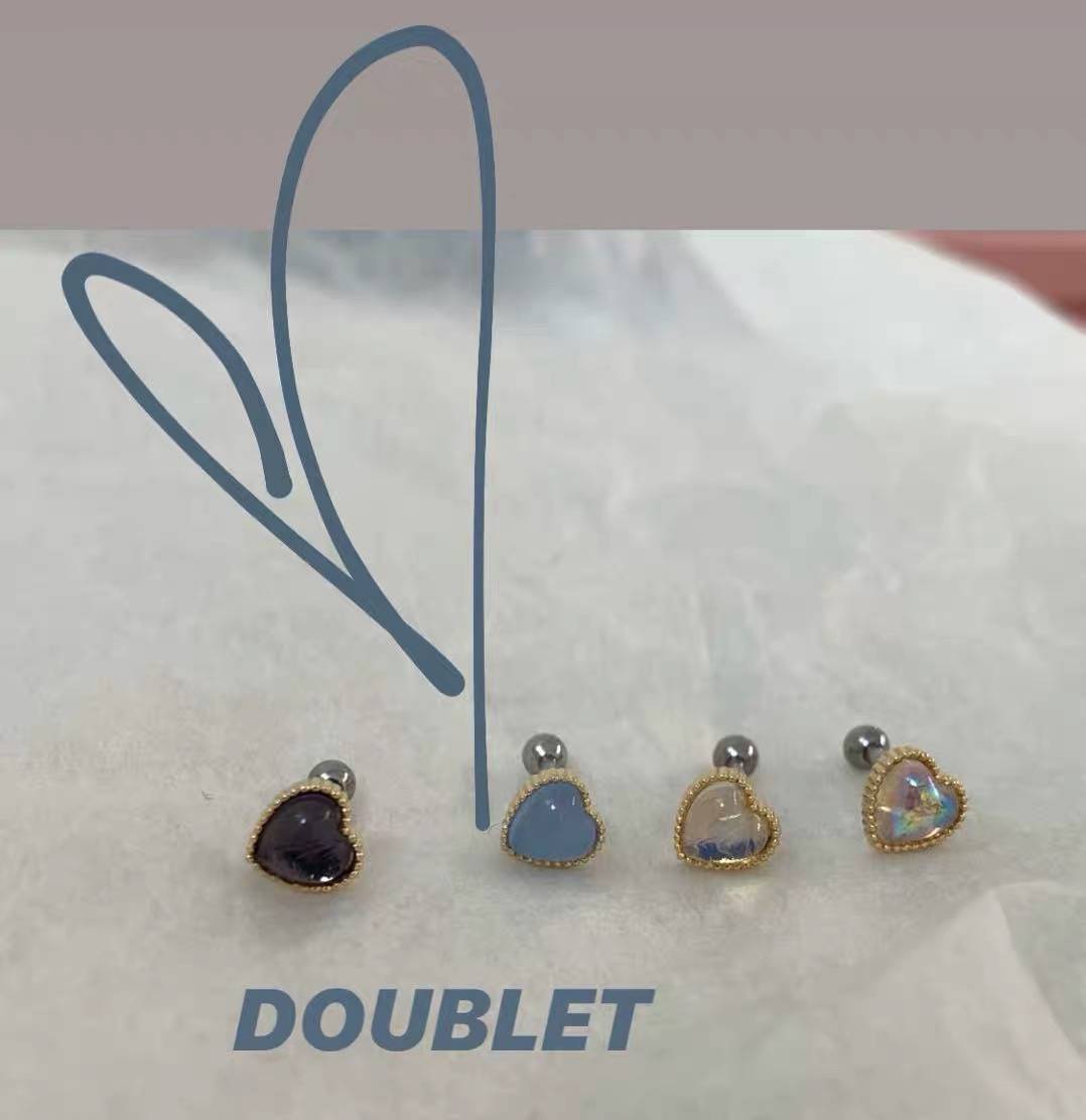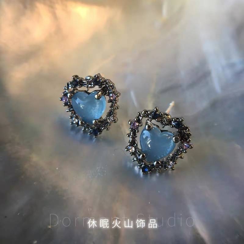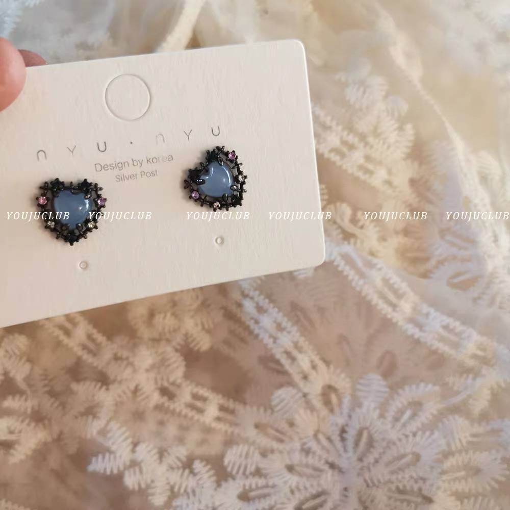 海洋之心 爱心做旧风 复古水钻猫眼石 小巧百搭耳钉耳饰女