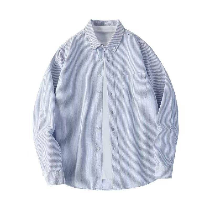 男士高级感纯棉长袖条纹打底春秋款衬衣