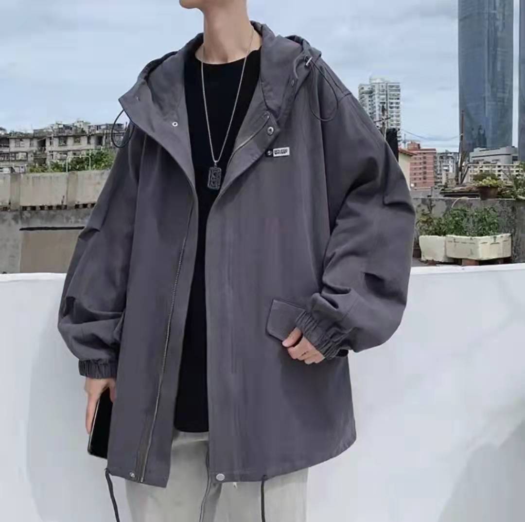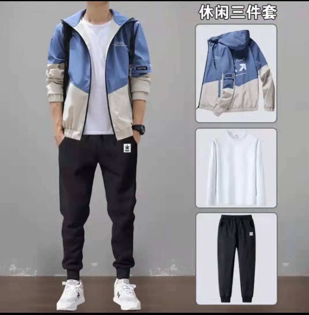 【三件套】【夹克+T恤+裤子】外套男秋冬季新款男装连帽夹克男