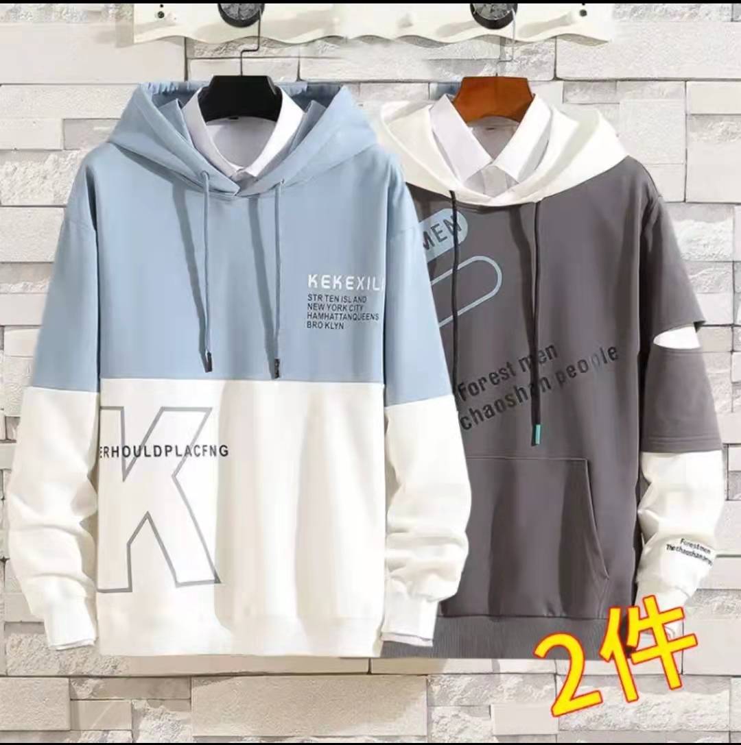 【118两件 加绒可选】卫衣男长袖T恤男连帽秋季新款印花学生青少年潮流韩版上衣服打底衫体恤衫男装