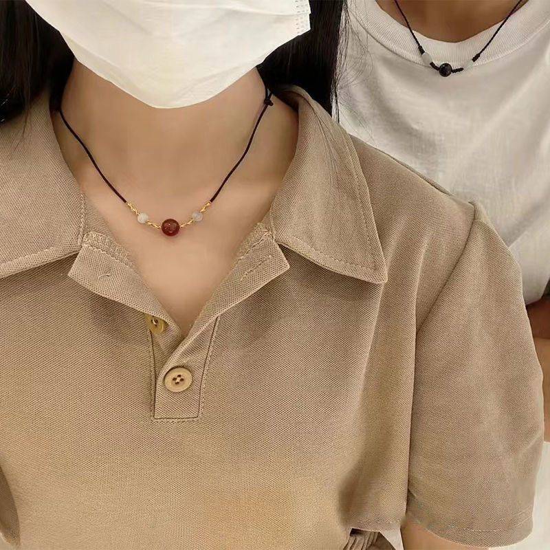 抖音热门同款转运珠红玛瑙项链手工编织红珠手链黑绳吊坠情侣礼物