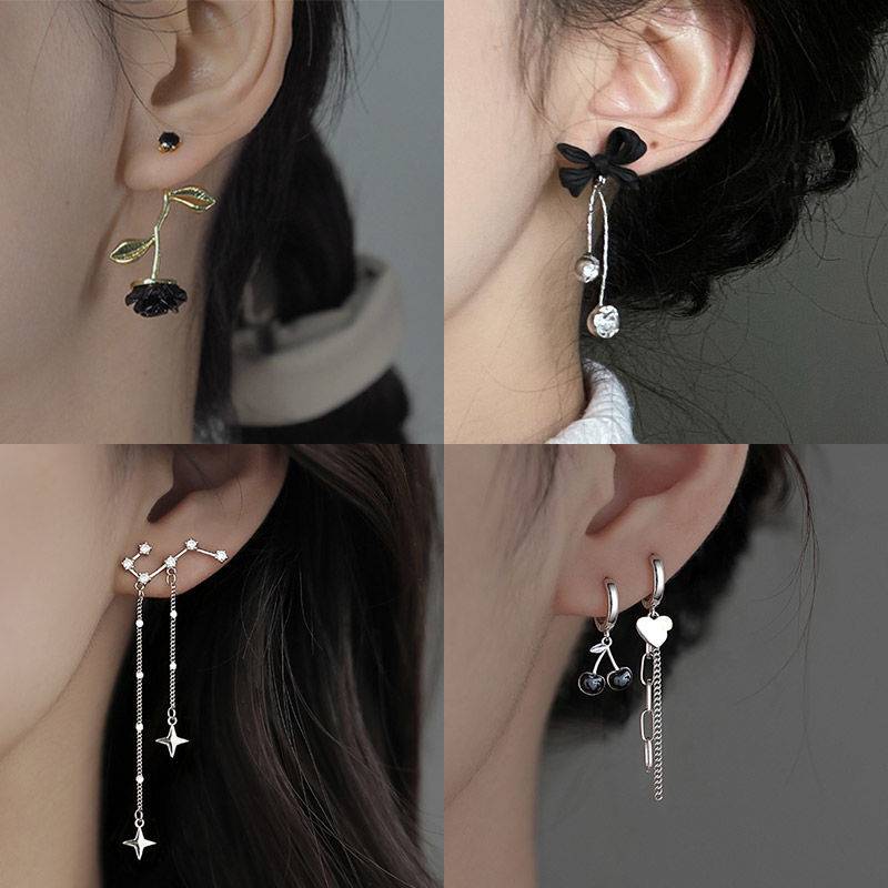 复古优雅黑玫瑰耳钉设计感2022年新款气质高级耳环耳饰日韩耳饰