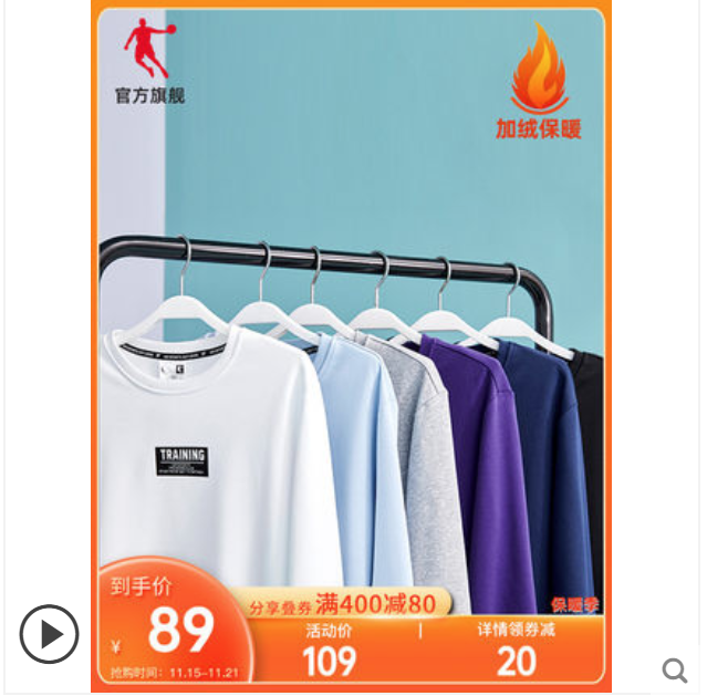 乔丹运动卫衣男装2021秋冬新款男士休闲套头衫圆领上衣运动加绒