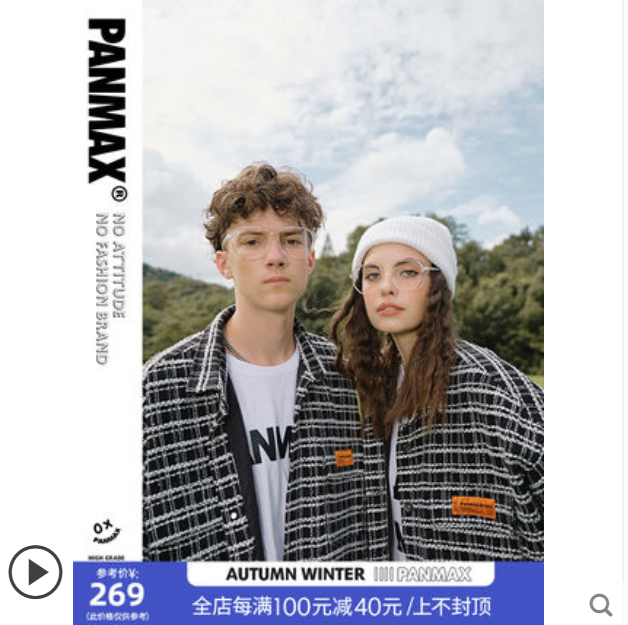 PANMAX简约格子外套男2021春秋美式大码情侣装时尚ins宽松款夹克